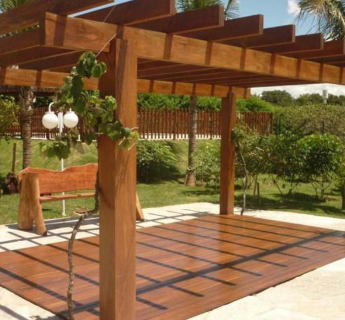 Estruturas de madeira de lei (como Cumaru, Ipê ou Garapa) transmitem uma imagem de sofisticação, cuidado e luxo. É o tipo de investimento que transforma uma “casa comum” em uma “casa de revista”, atraindo olhares e valorizando cada metro quadrado do terreno.